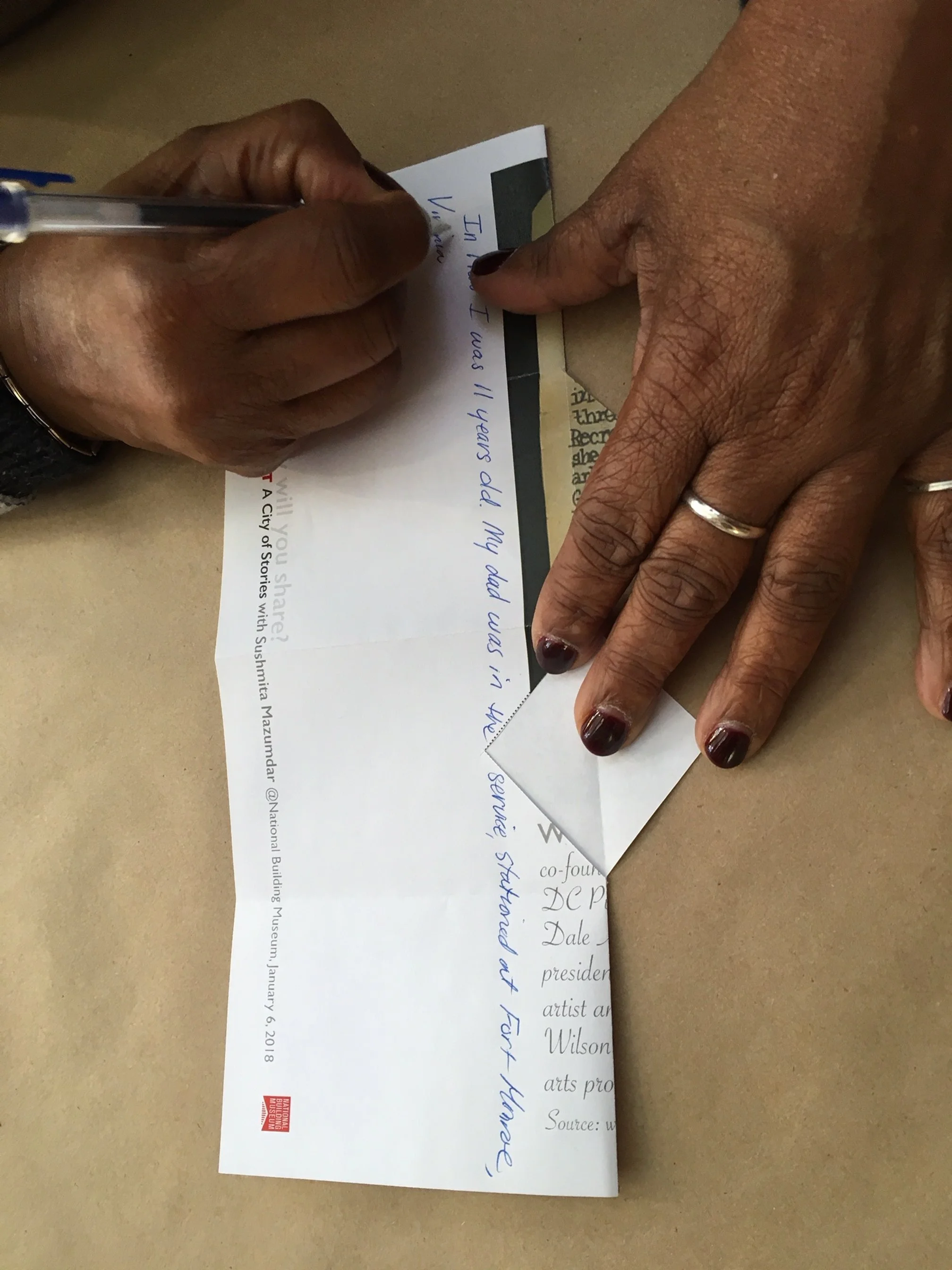 I would invite others to respond to a story or image that speaks to them. I would show them how the StoryPage becomes a house-shaped book and with blank space where they can share their story for everyone to read. When they shared their stories I knew I would learn a lot more about the history and the people of Washington DC and the people who live/visit here.