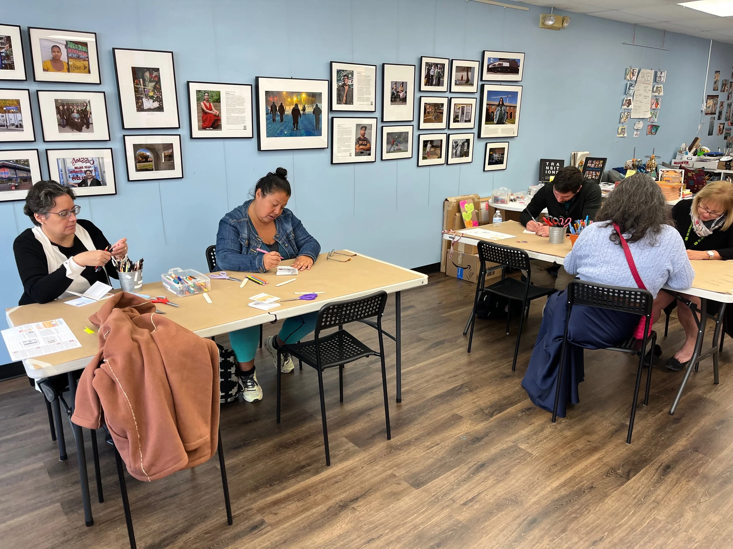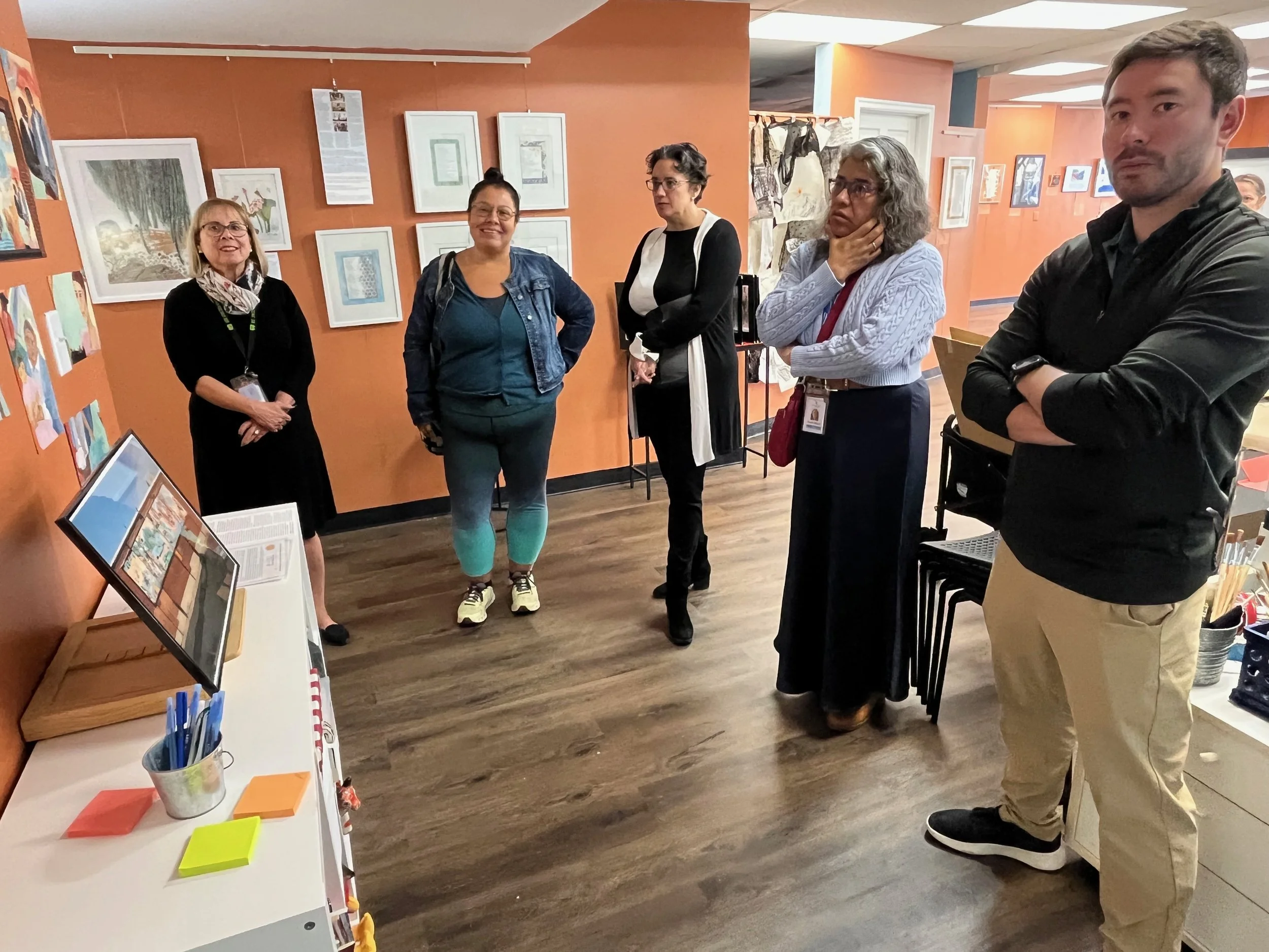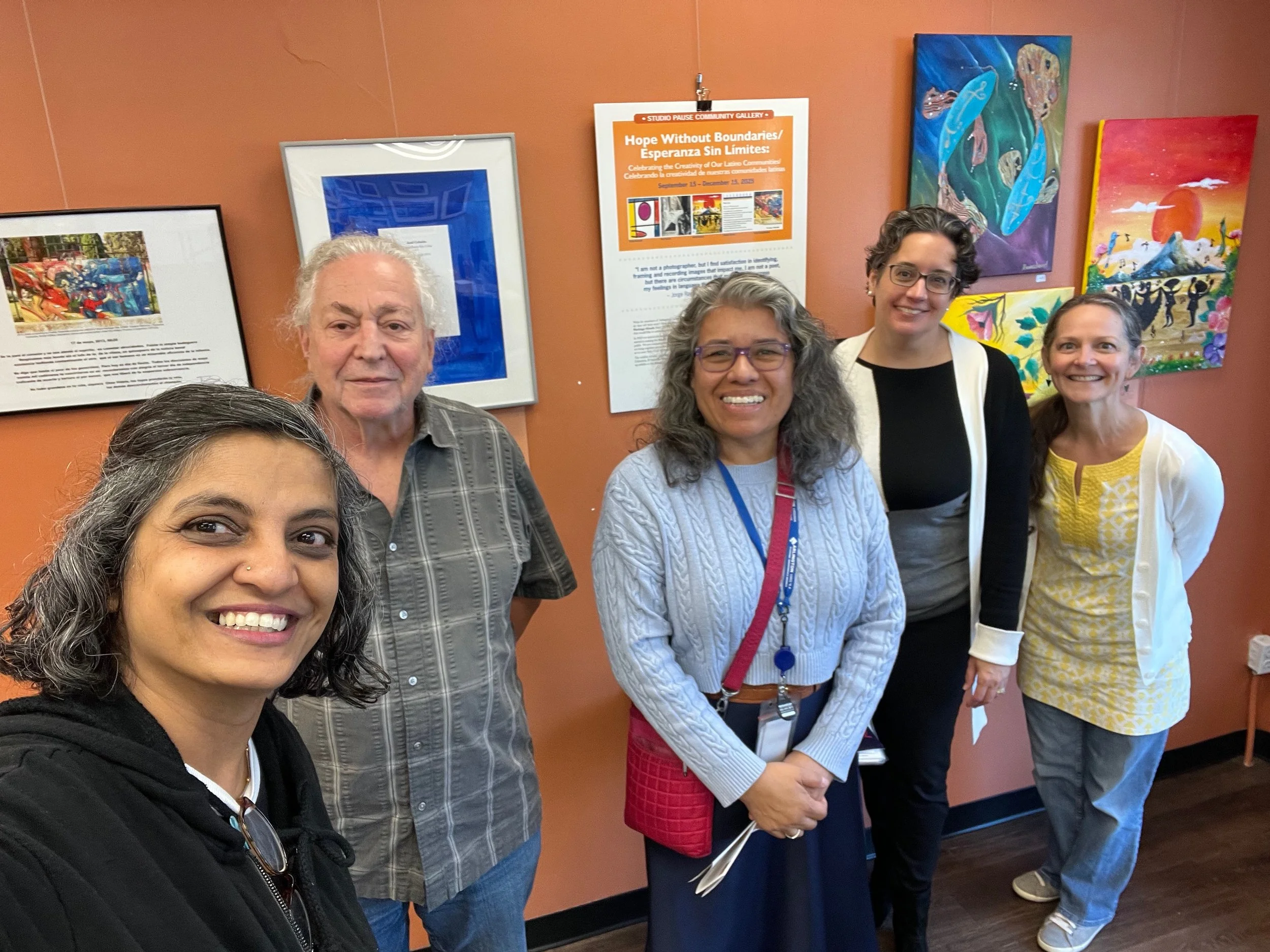 County employees were invited to engage with the Studio PAUSE exhibit, Hope Without Boundaries/Esperanza Sin Limites, in various ways. They could drop in or come with a group. However they decided to engage, they got a tour of the exhibit from Sushmita and other PAUSErs or could be self-guided. Then they did the “Exploring the Multicultural Me,” bookmaking activity. In that book they found prompts based on the exhibit which they could respond to.