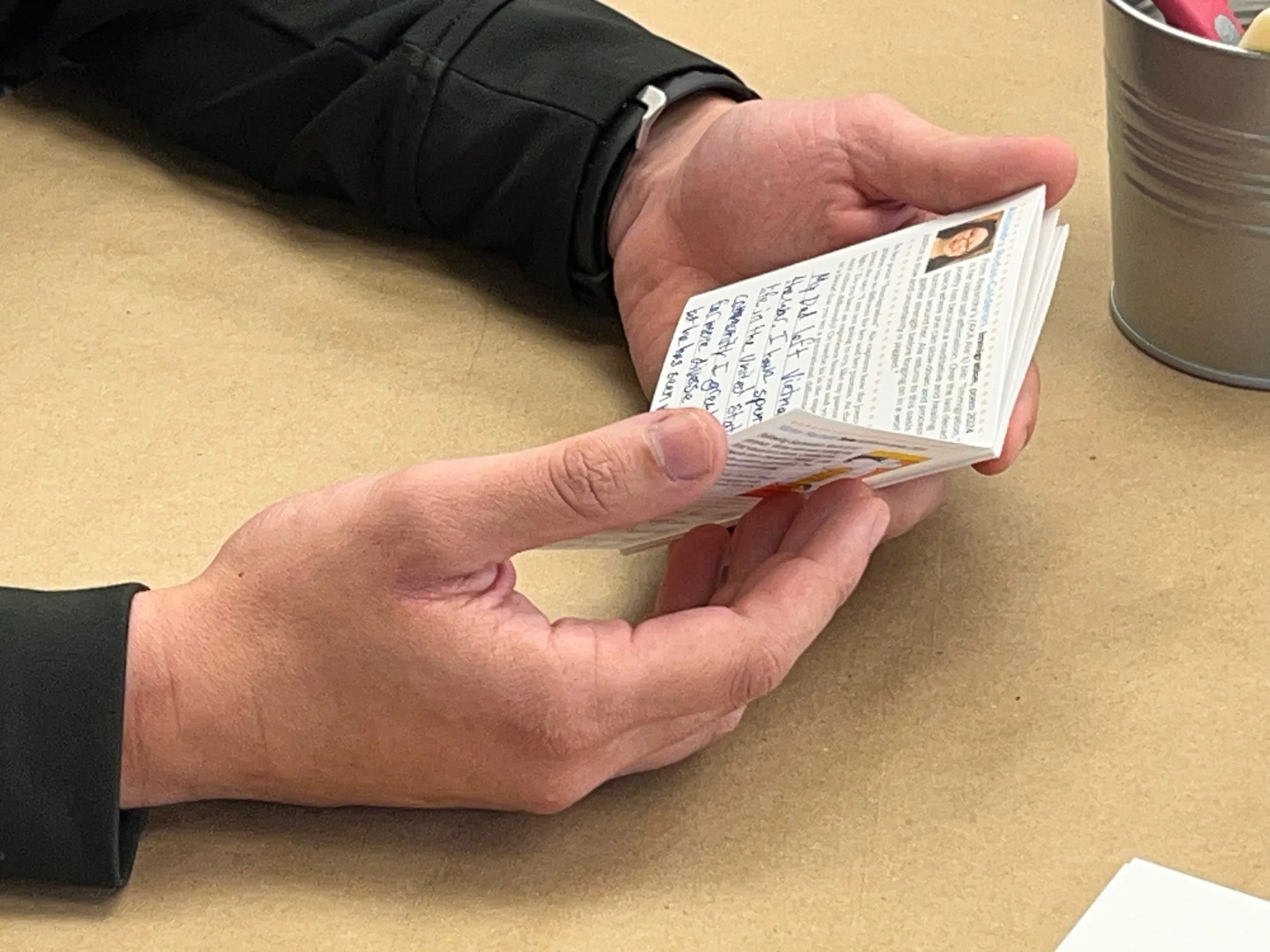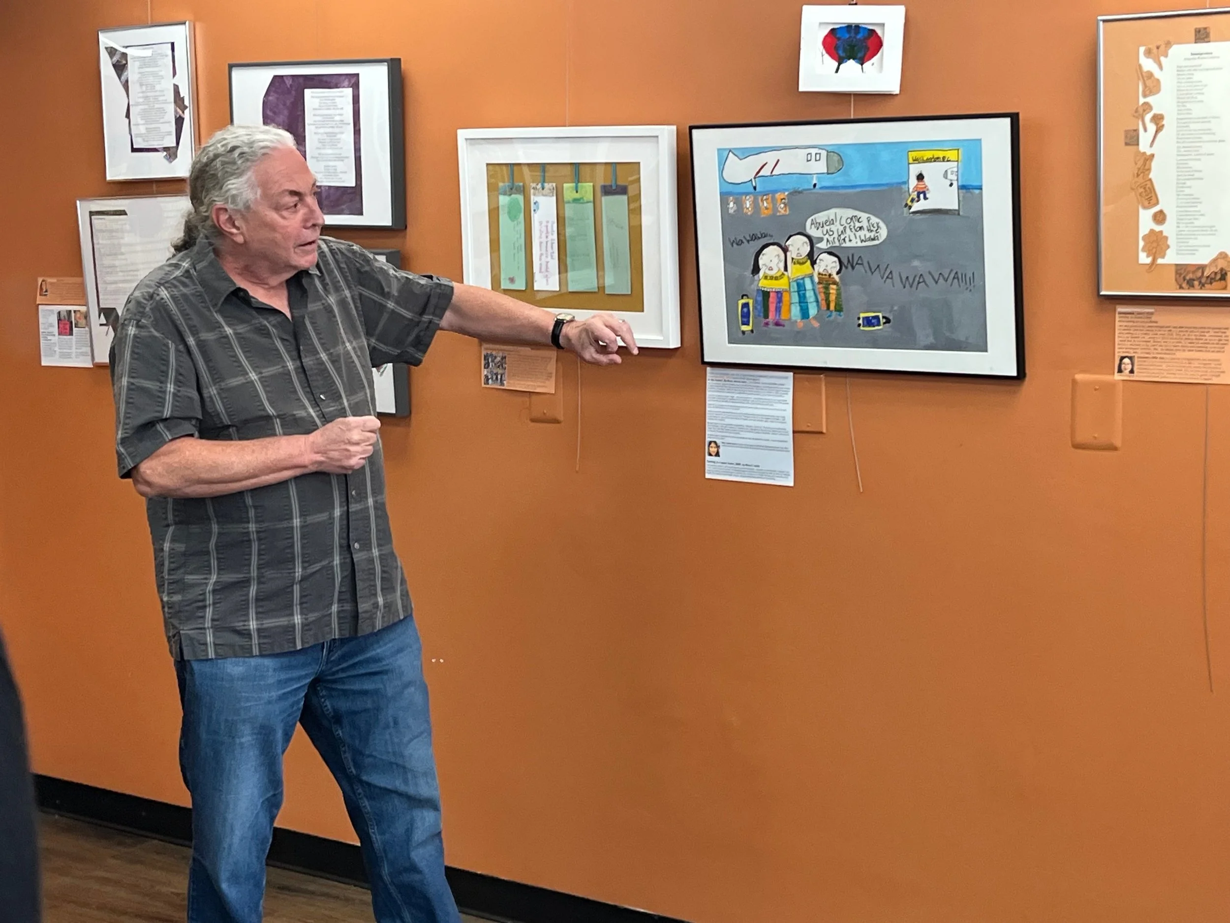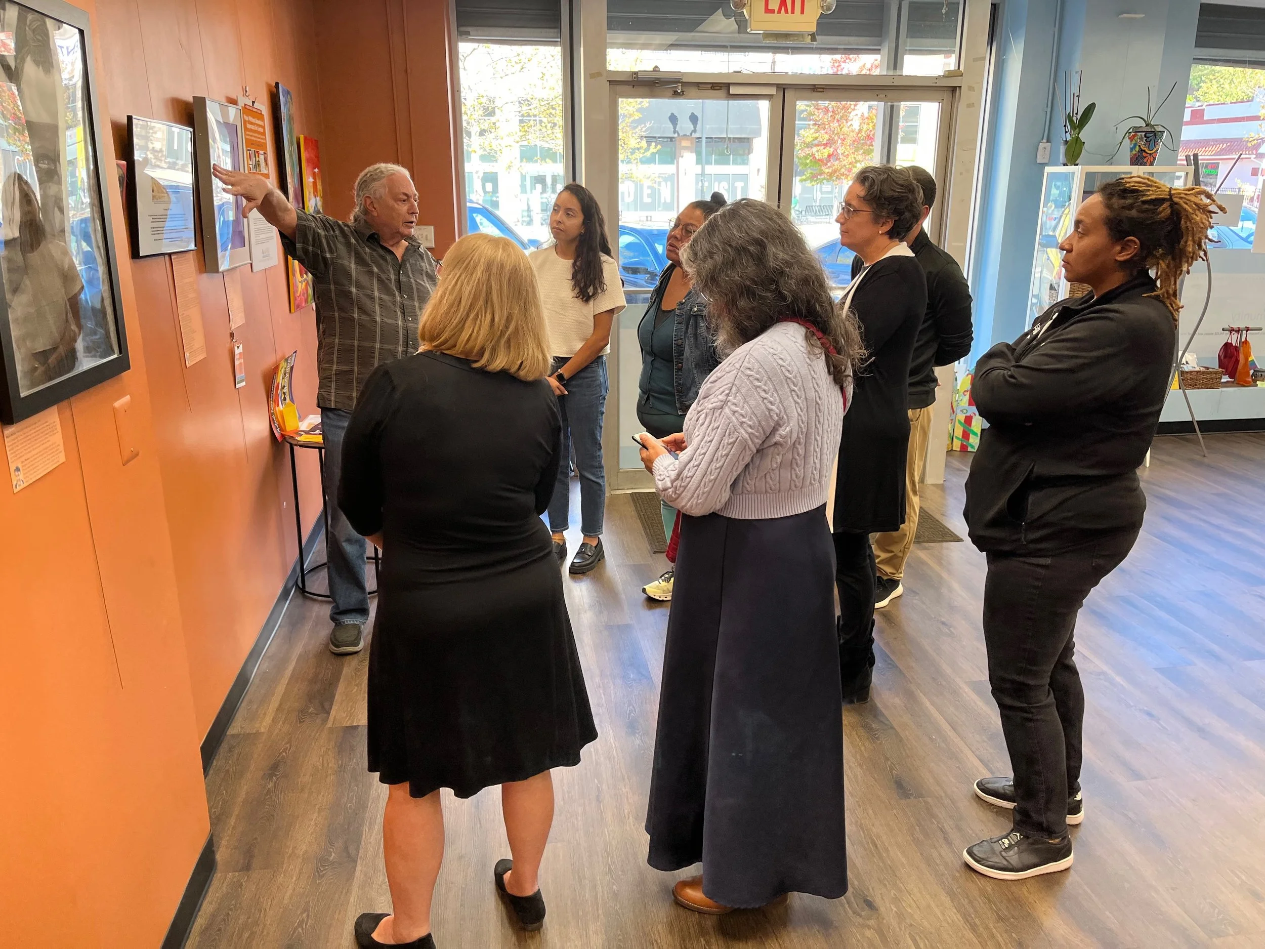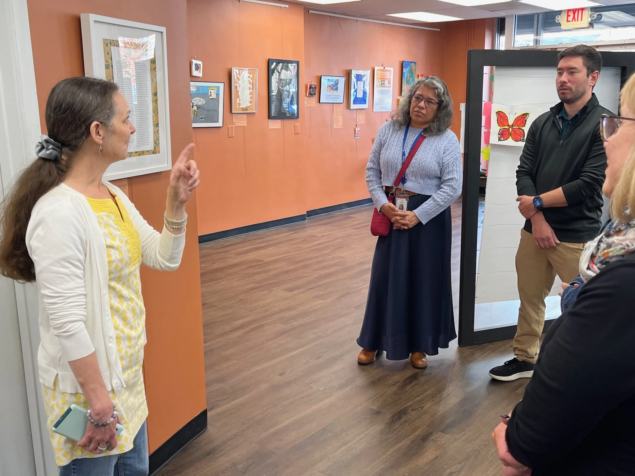 County employees were invited to engage with the Studio PAUSE exhibit, Hope Without Boundaries/Esperanza Sin Limites, in various ways. They could drop in or come with a group. However they decided to engage, they got a tour of the exhibit from Sushmita and other PAUSErs or could be self-guided. Then they did the “Exploring the Multicultural Me,” bookmaking activity. In that book they found prompts based on the exhibit which they could respond to.